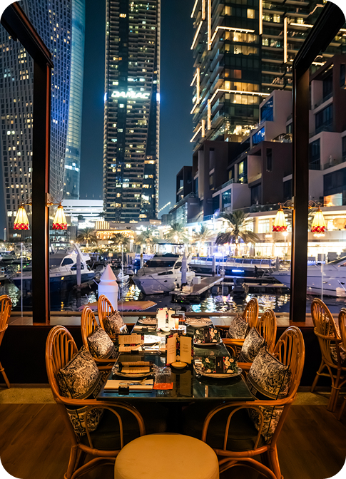 As a modern-day mosaic of cultures, Hiroshi brought his vision to life with Blume Marina and Blume Sports Lounge. More than just dining destinations, they embody a lifestyle of smoke, flavor, and design. Overlooking the Dubai Marina waterfront, both spaces invite guests to unwind with crafted cocktails, vibrant mocktails, and premium shisha in an atmosphere that blends sophistication with social energy.