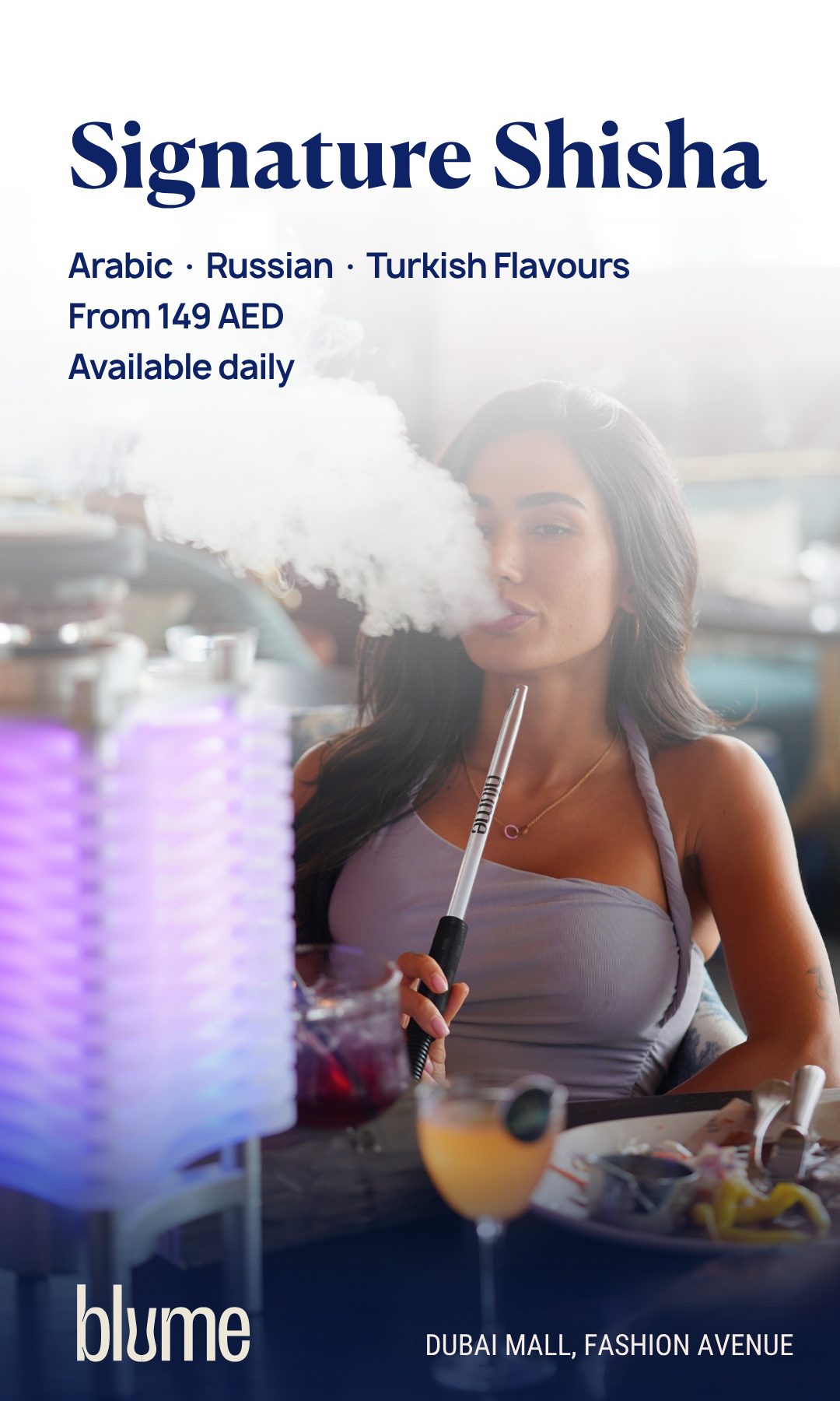 Step into Blume and immerse yourself in an atmosphere of refined elegance. Our Mediterranean and Japanese fusion cuisine is paired with breathtaking views of the Burj Khalifa, while every corner reflects thoughtful design and sophistication. Complete your experience with our premium shisha, where tradition meets luxury, making every moment truly unforgettable.