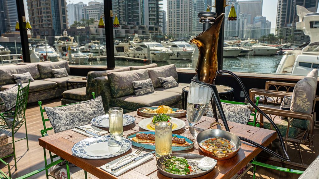 During the cooler months, outdoor shisha in Dubai Marina becomes the highlight. Premium shisha is enjoyed on the terrace overlooking the water, with passing yachts and soft evening light creating an atmosphere that feels calm and unforced. It is ideal for long conversations, relaxed gatherings, and unhurried evenings by the marina.